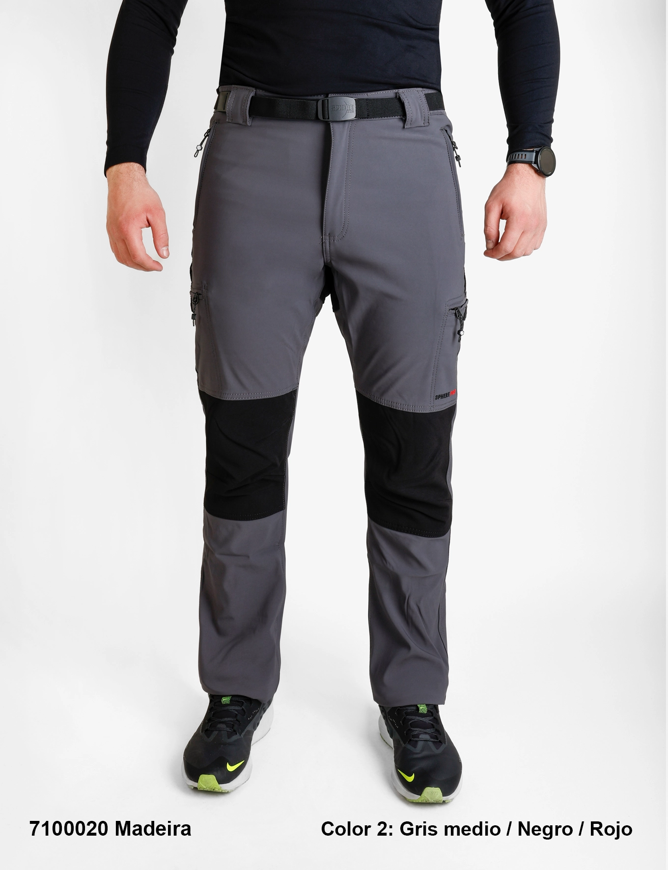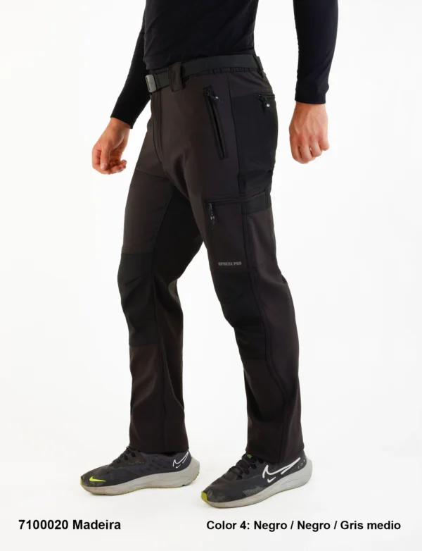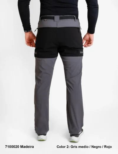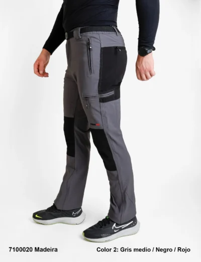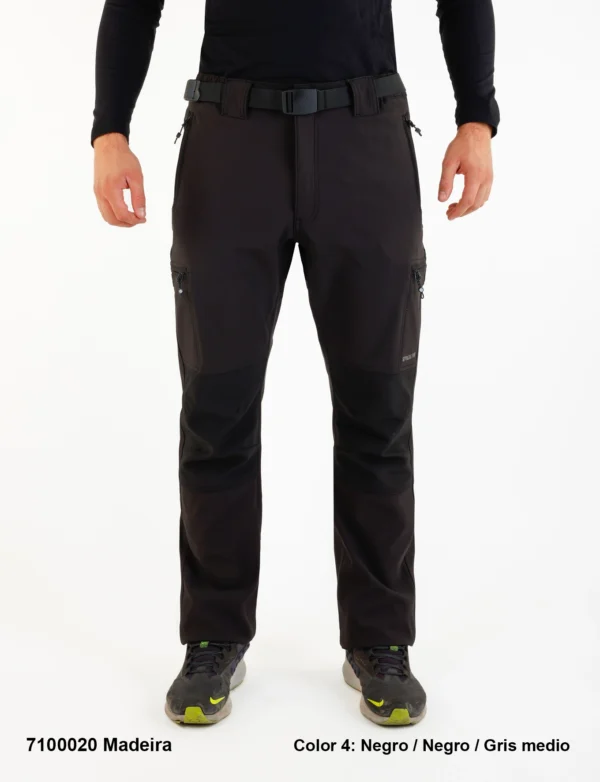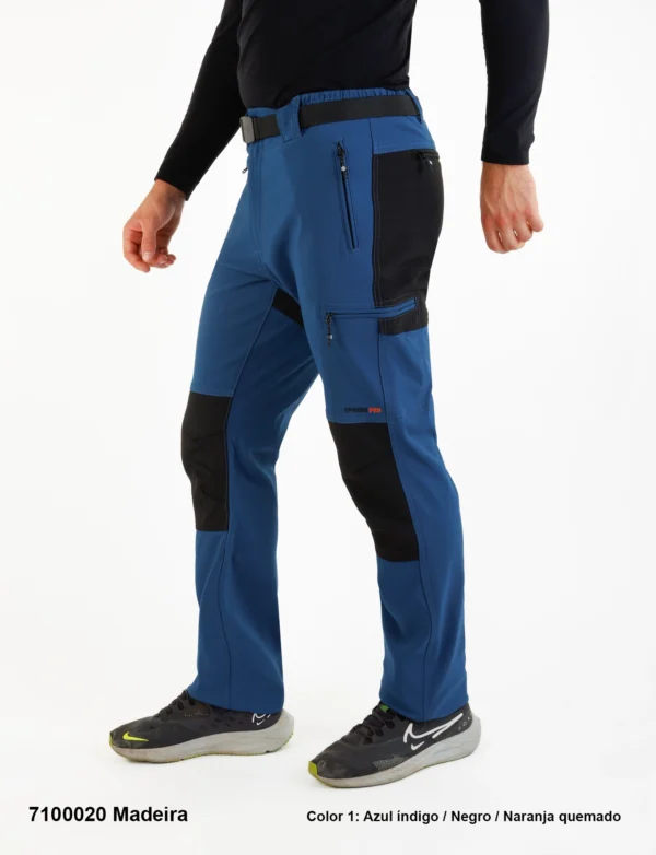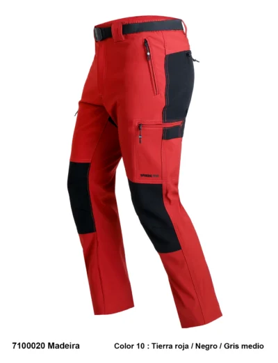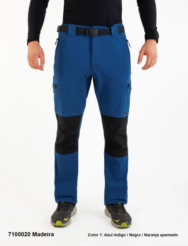 Descripció: Tall tècnic, cintura semi elàstica amb tanca de botó claudàtor i cinturó elàstic ajustable, sis butxaques inserides, teixit especial als genolls i culera, pinces als genolls, goma ajustable als baixos i logo brodat.
