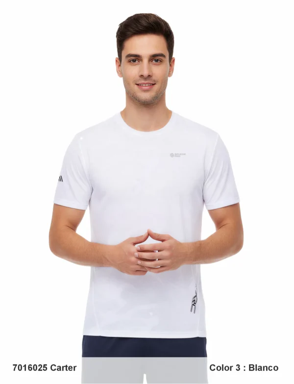Planchar en fríoDescripción: Cuello redondo, tejido estructurado, costuras planas con remalladora, logos reflectantes.