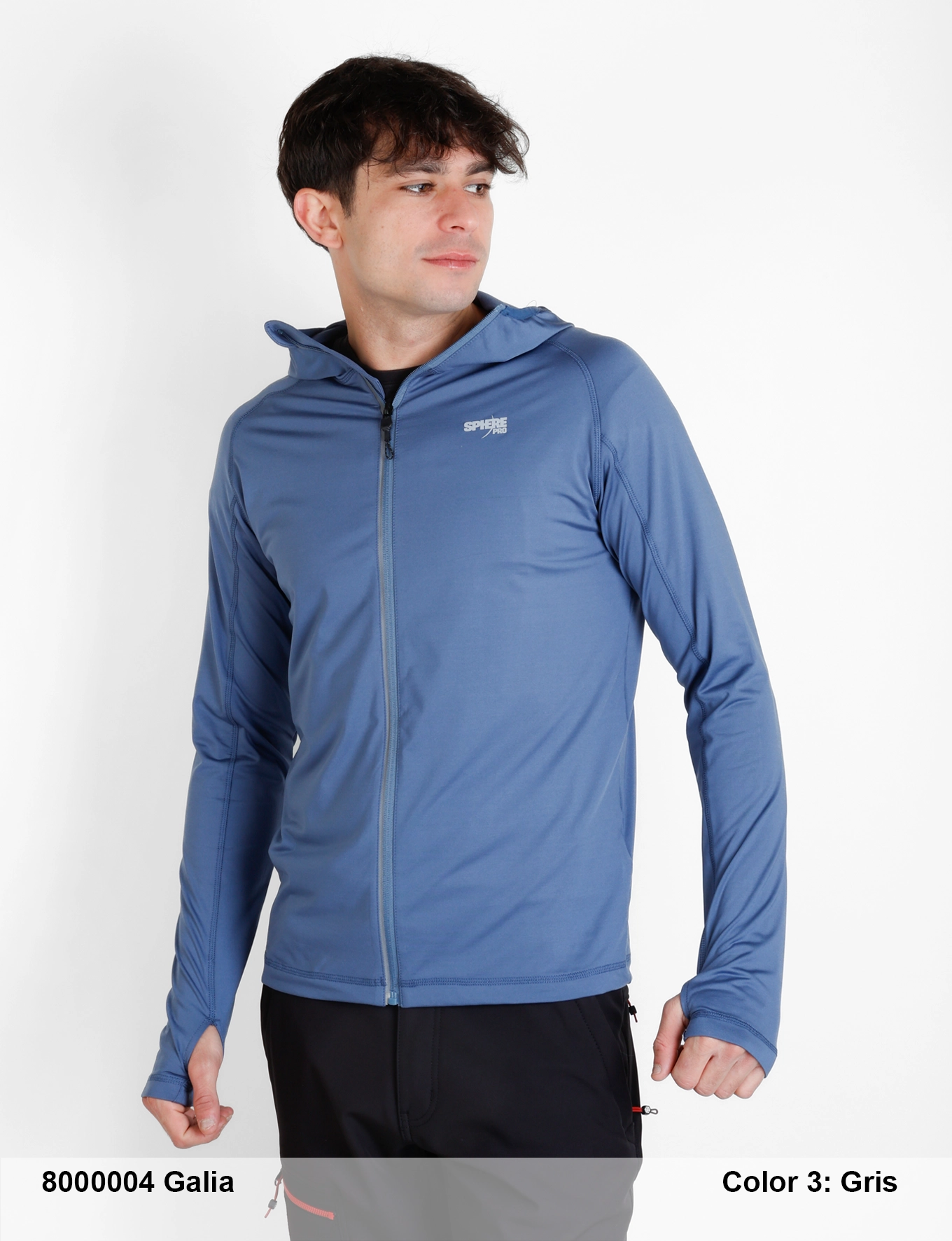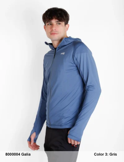 Description: Inverted two-tone central zipper (reflective), chin guard, overlocked seams, thumbhole on sleeve, reflective print on back, reflective logo.