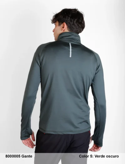 Description : Col avec fermeture éclair centrale bicolore (réfléchissante), protège-menton, coutures surjetées, trou pour le pouce sur la manche, impression réfléchissante dans le dos, logo réfléchissant.