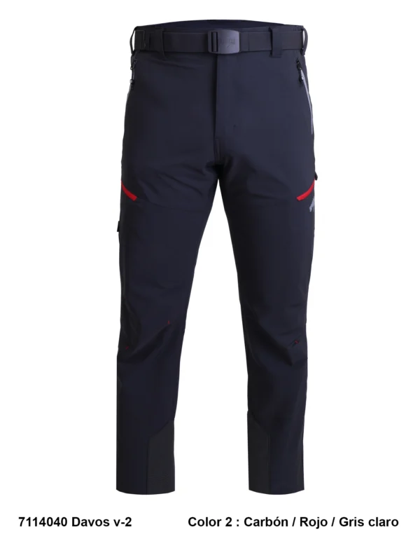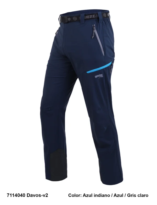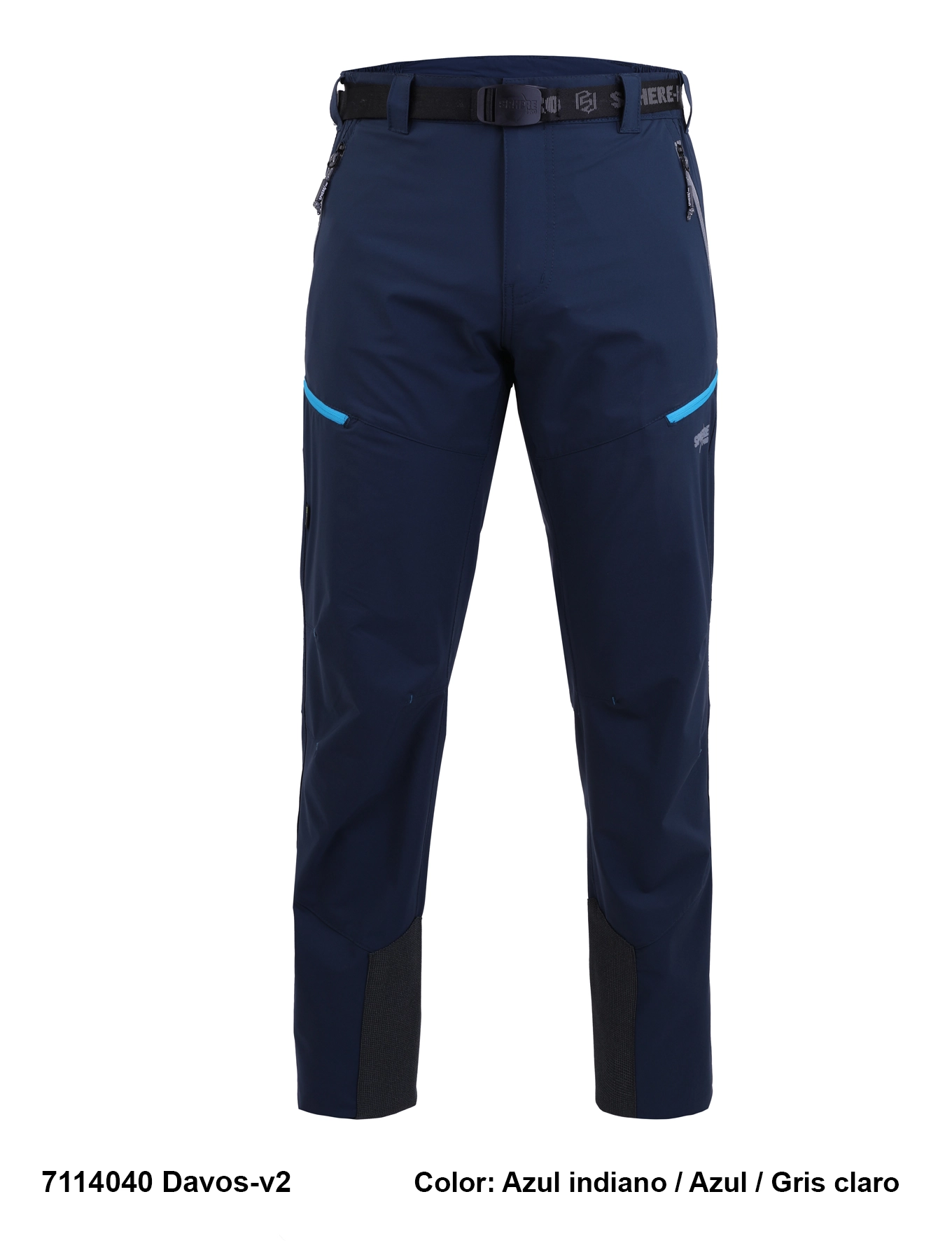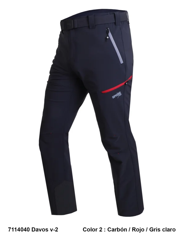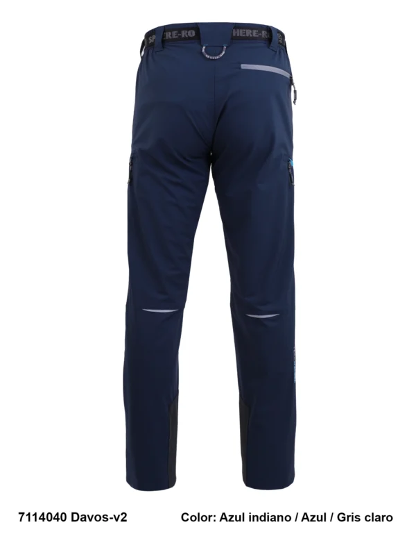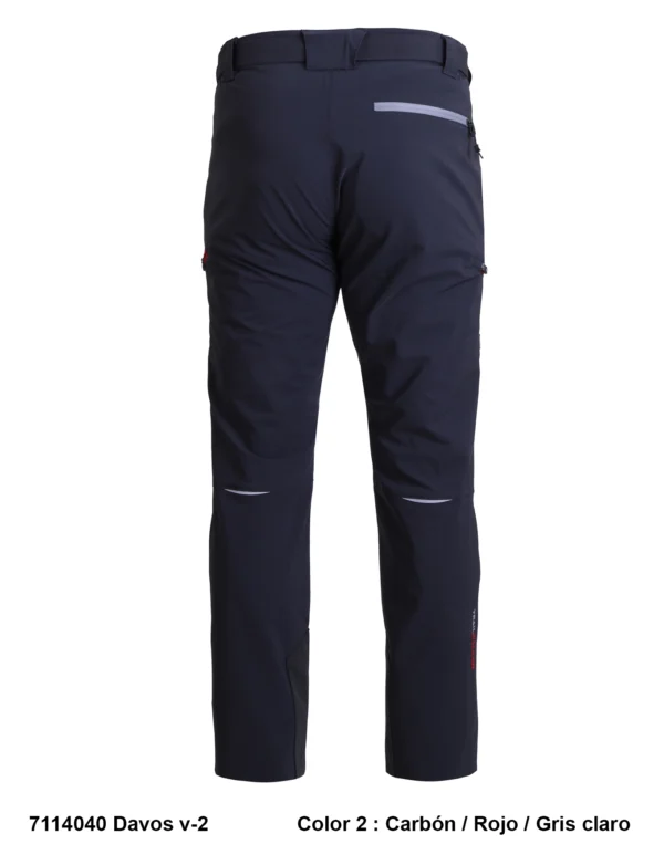 Description : Taille semi-élastique avec fermeture à bouton-pression, ceinture élastique réglable, cinq poches avec fermetures éclair inversées contrastées, pinces aux genoux, tissu spécial et caoutchouc réglable en bas, bordure réfléchissante au dos, logo brodé.