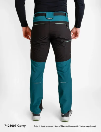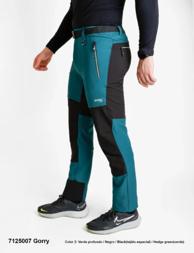 Description : Taille semi-élastique avec fermeture à bouton-pression et ceinture élastique réglable, cinq poches avec fermetures éclair inversées bicolores, pinces aux genoux, liseré réfléchissant à l’arrière, cordon de serrage et tissu spécial aux chevilles, logo brodé.