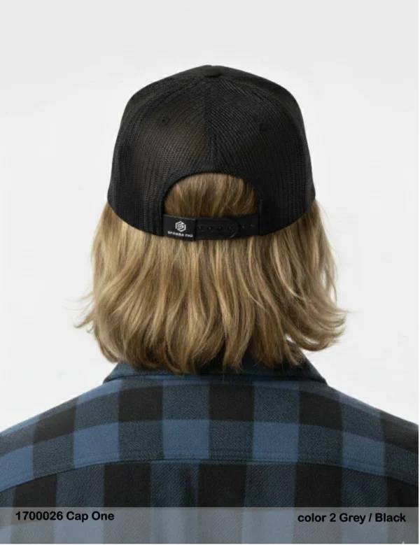 Descripción: Tejido plano en la parte delantera y rejilla en la parte trasera, cierre Snapback trasero para ajuste perfecto, parche cosido con largo en el frontal.