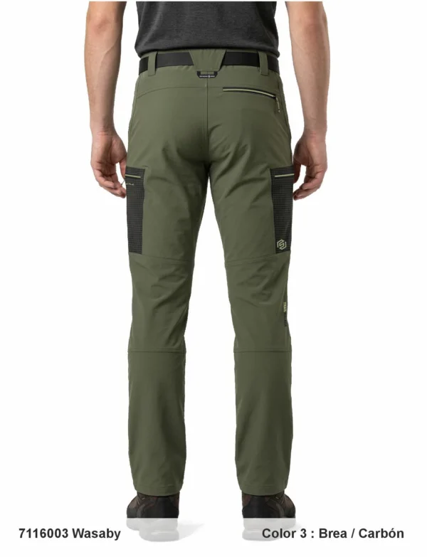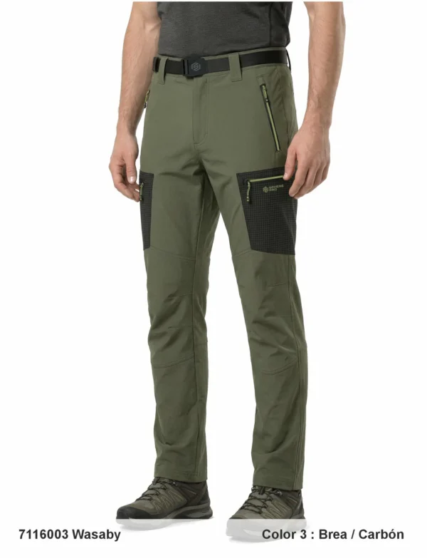 No plancharDescripción: Cintura semi-elástica con cierre de botón a presión, cinturón elástico ajustable, cinco bolsillos con cremalleras invertidas bicolor, pinzas en las rodillas, goma ajustable en los bajos, logo bordado.